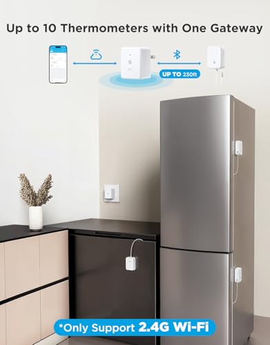 - Comes with multiple components: WiFi gateway, two thermometer sensors, batteries, holders, lanyards, and FDA tape.