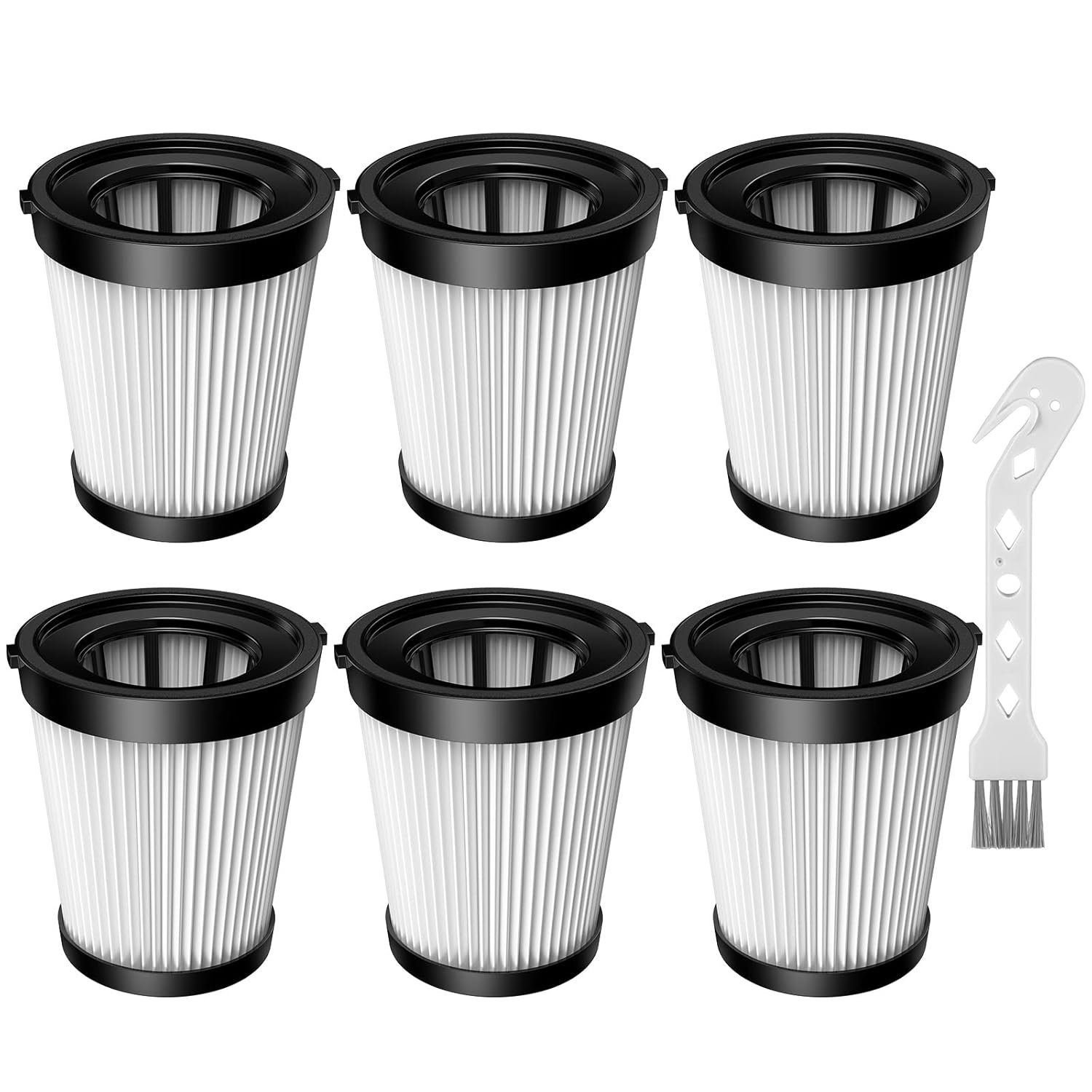 - Includes 6 filters and a cleaning brush in the pack.